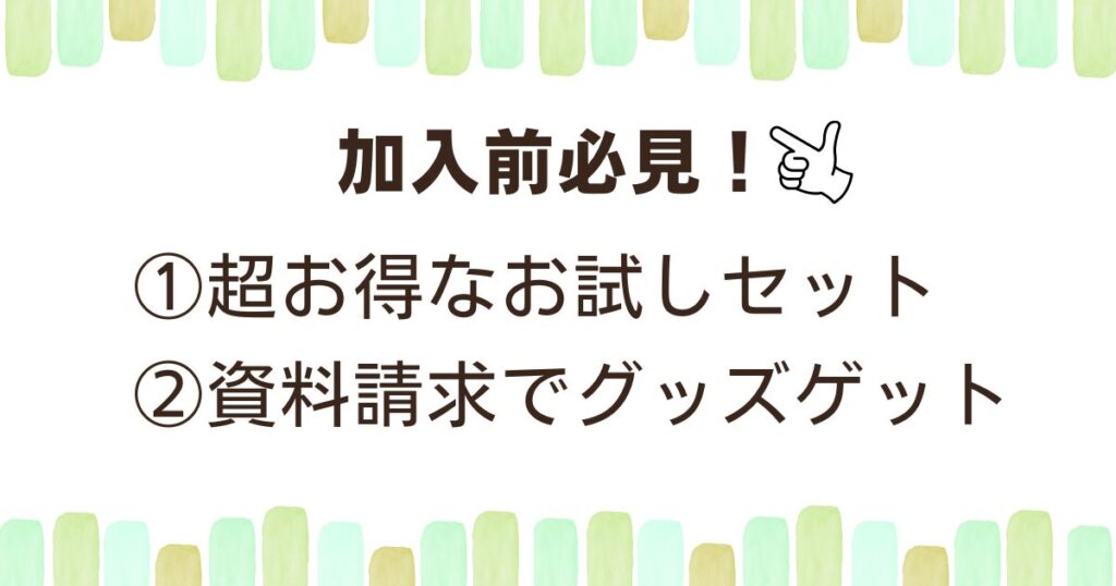 - 加入前にもらえるお試しセットの内容