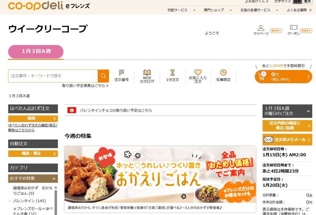eフレンズを使うとスマホでも注文ができます。移動時間、仕事や子育てのすきま時間に商品を選べるため紙よりも使いやすいので登録するのがおすすめです。
