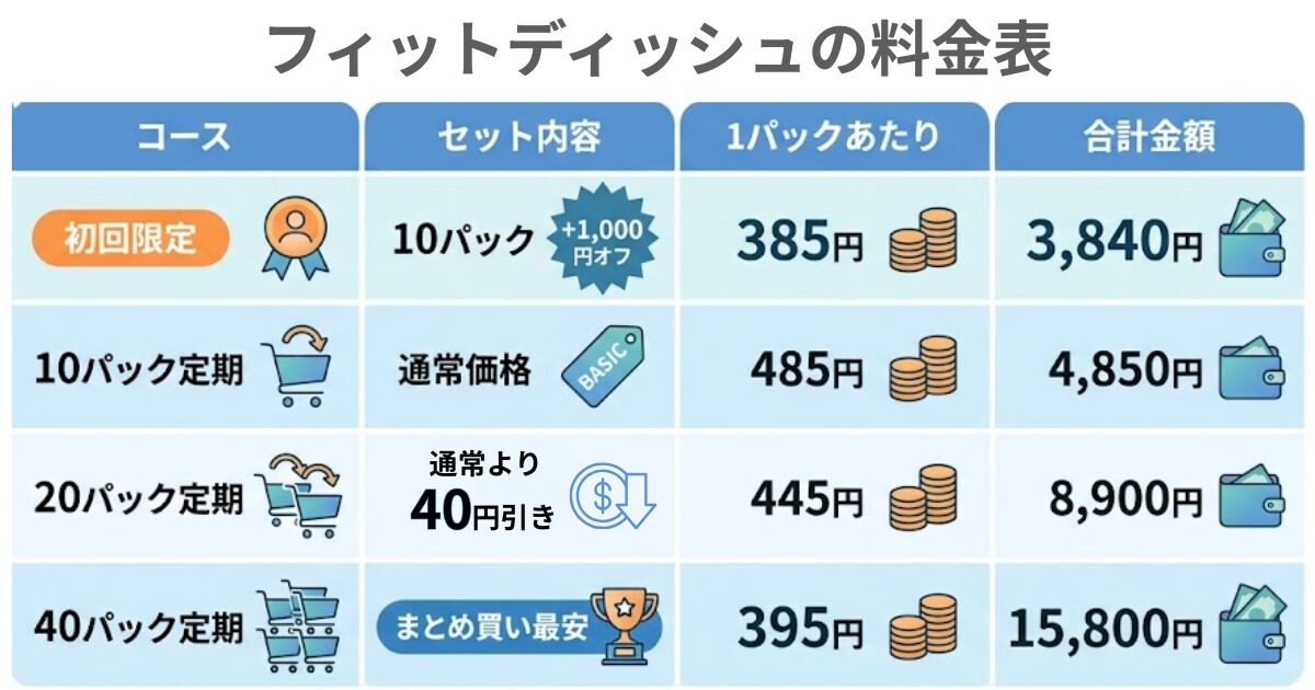 まとめ買いでお得になるフィットディッシュ(FItDish)の料金とコース内容
