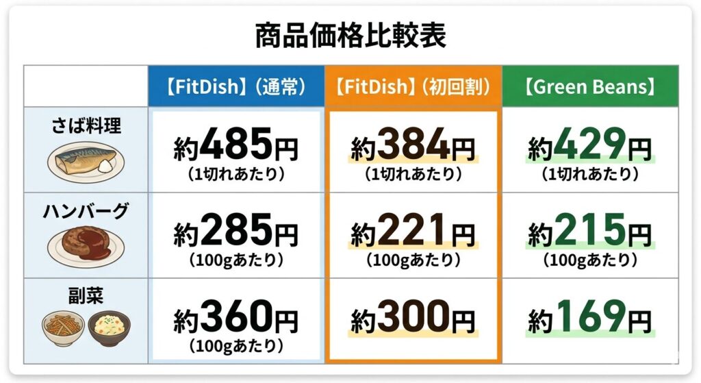 | 商品 | 【FitDish】 (通常) | 【FitDish】 (初回割) | 【Green Beans】 | コープデリ |