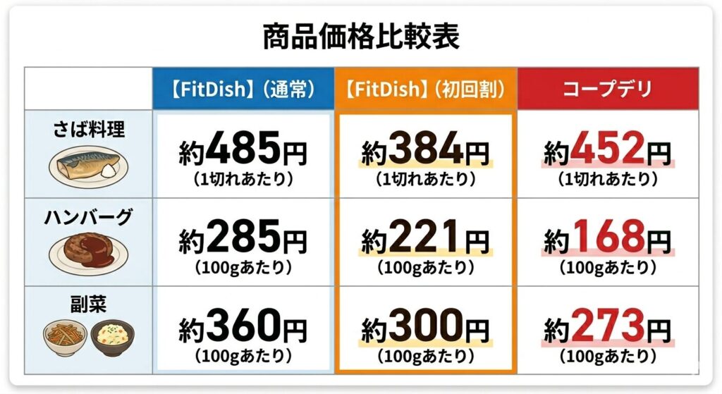 フィットディッシュ(FItDish)とコープデリの料金を比較