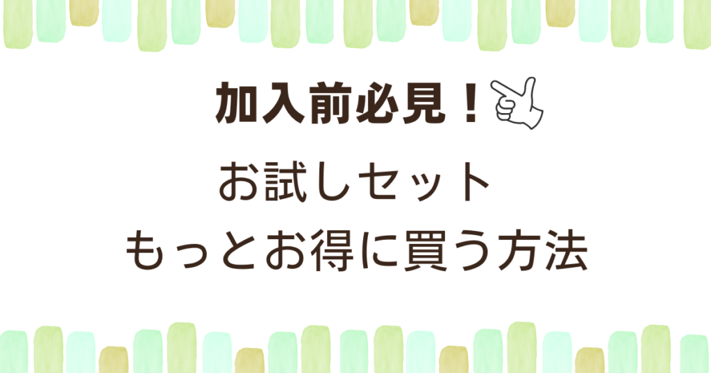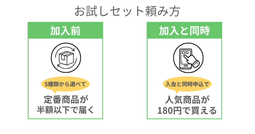 ① 加入前に試す「お試しセット」(1世帯1回限り)