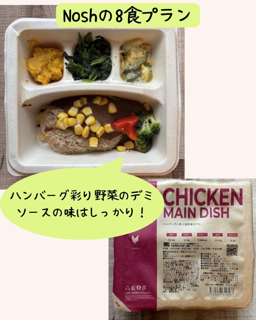 実際に食べてみて、塩分控えめと書かれていますがメイン料理には味付けはしっかり感じられます。ハンバーグのソースも普通のデミソースと特に違いは感じられませんでした。